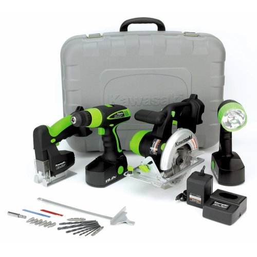 Powerful 19.2V 600 collection motor for industrial energy tasks and repairs.1.3 amp hour same old clip-on battery with 3-5 hour charger.The energy and efficiency of Kawasaki.4pc package includes drill, jig saw, round noticed, work mild.3/8" keyless chuck...